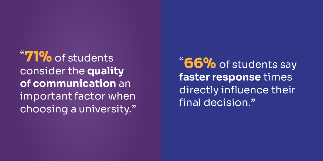 Clear guidance also reduces confusion about deadlines, documentation, and next steps. Studies indicate that 71% of students consider the quality of communication an important factor in choosing a university, while 66% say that faster response times directly influence their final decision.