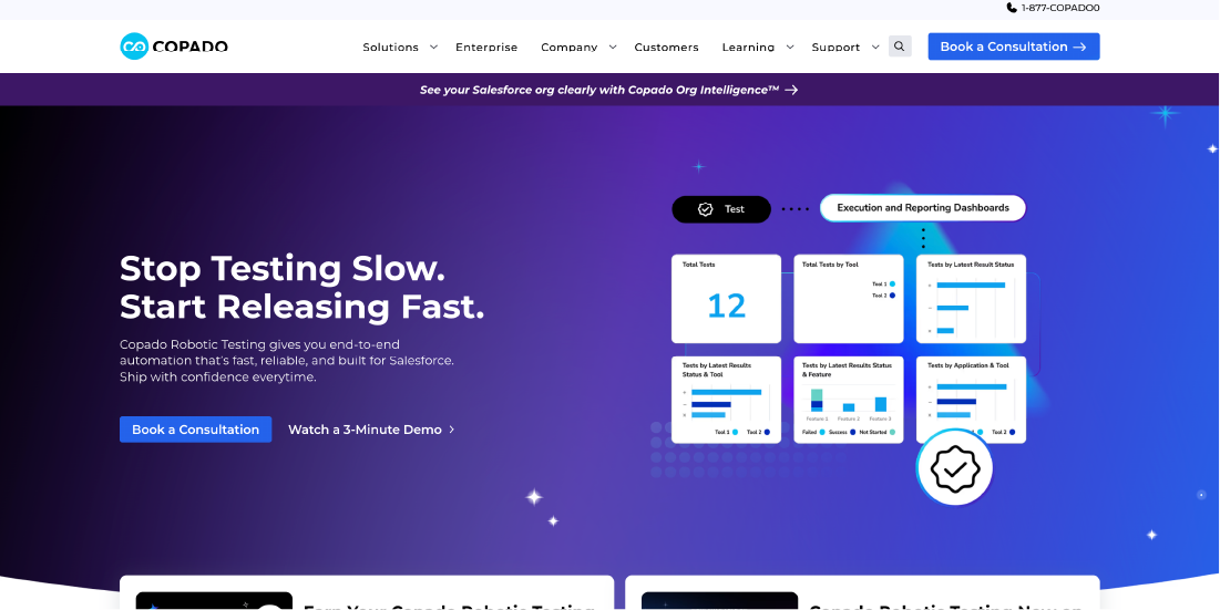 Copado Robotic Testing uses AI to automate Salesforce testing and QA processes. Its CopadoGPT feature converts user stories into executable test scripts.