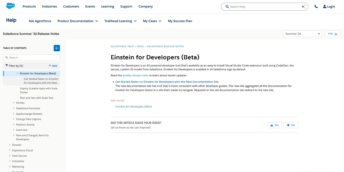 Einstein for Developers is Salesforce’s native AI tool that helps developers write Apex and Salesforce-specific code faster. It operates within Salesforce’s secure environment.