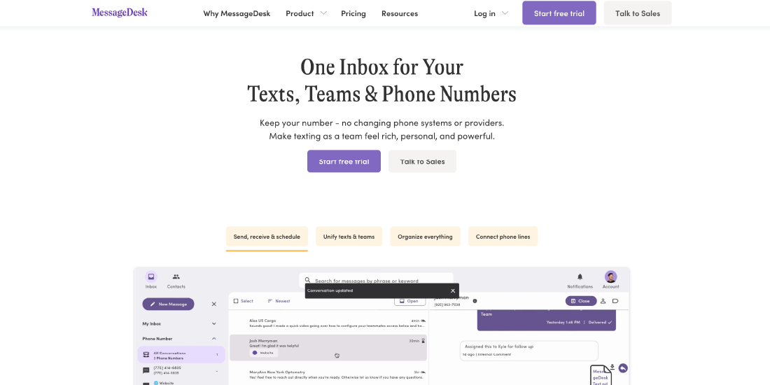 SMS solution with CRM integration, designed for team collaboration in communication efforts.