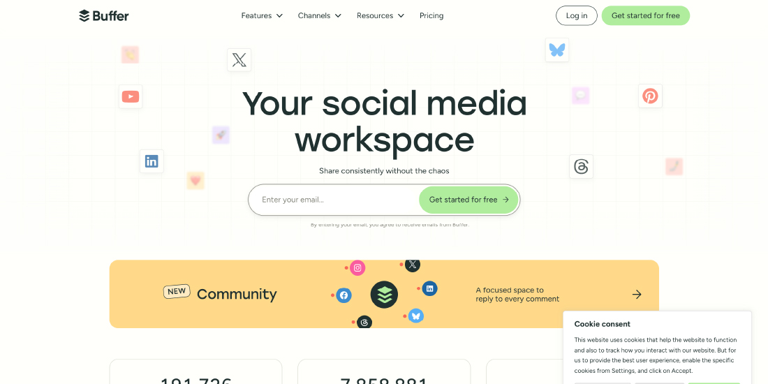 - Free tier: 3 channels. Paid plans: $6–$120/month.