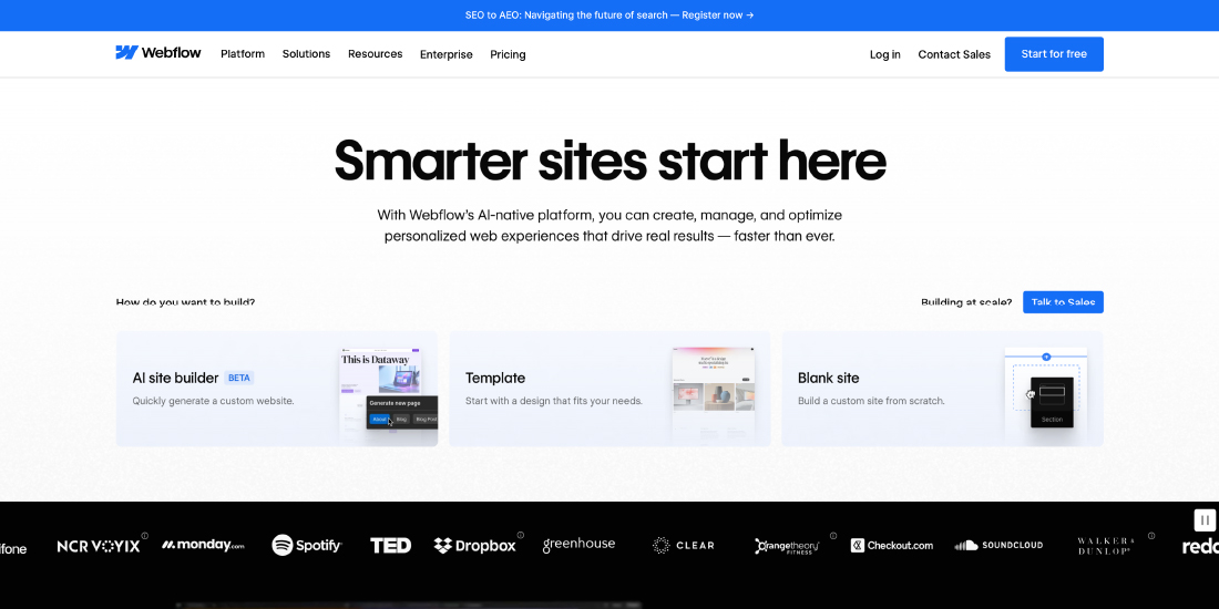 Webflow stands out by allowing marketers to build fully customized, responsive websites without coding. Its built-in SEO tools and visual editor make it easy to create engaging content that drives organic traffic and conversions.