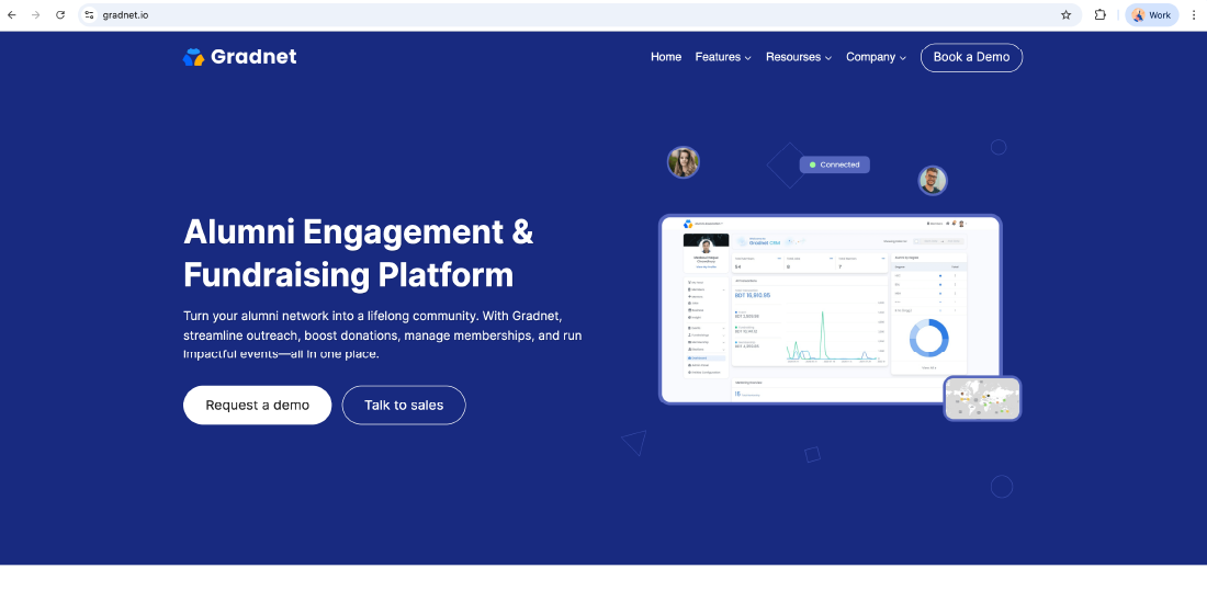 Gradnet is a comprehensive alumni CRM and community management platform, trusted by over 100 alumni networks. Gradnet has helped raise $2M+ in alumni donations and sell $300K+ in event tickets, making it a leader in alumni engagement.