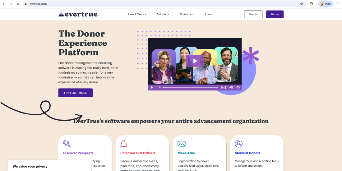 EverTrue is a donor intelligence platform that integrates with CRMs to track alumni engagement and giving behavior, providing actionable insights for development teams.