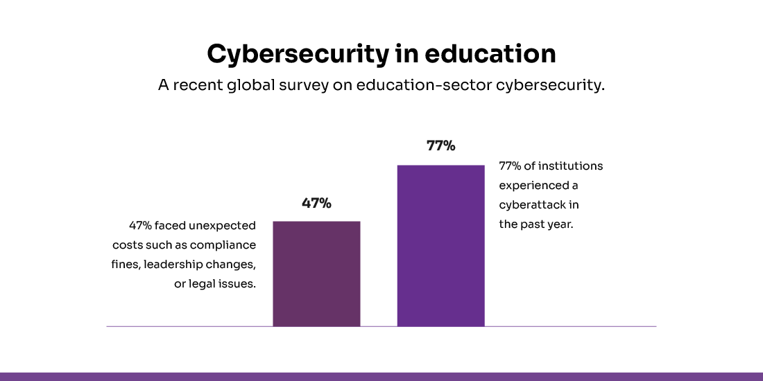 Policies are only effective when people understand and follow them. Ongoing education ensures that faculty, staff, and students can identify and respond to risks effectively. A recent global survey on education-sector cybersecurity found that 77% of institutions experienced a cyberattack in the past year, up from 69% the previous year, and nearly half (47%) faced unexpected costs such as compliance fines, leadership changes, or legal issues. Regular training and awareness programs are essential to minimize such risks and protect the institution.