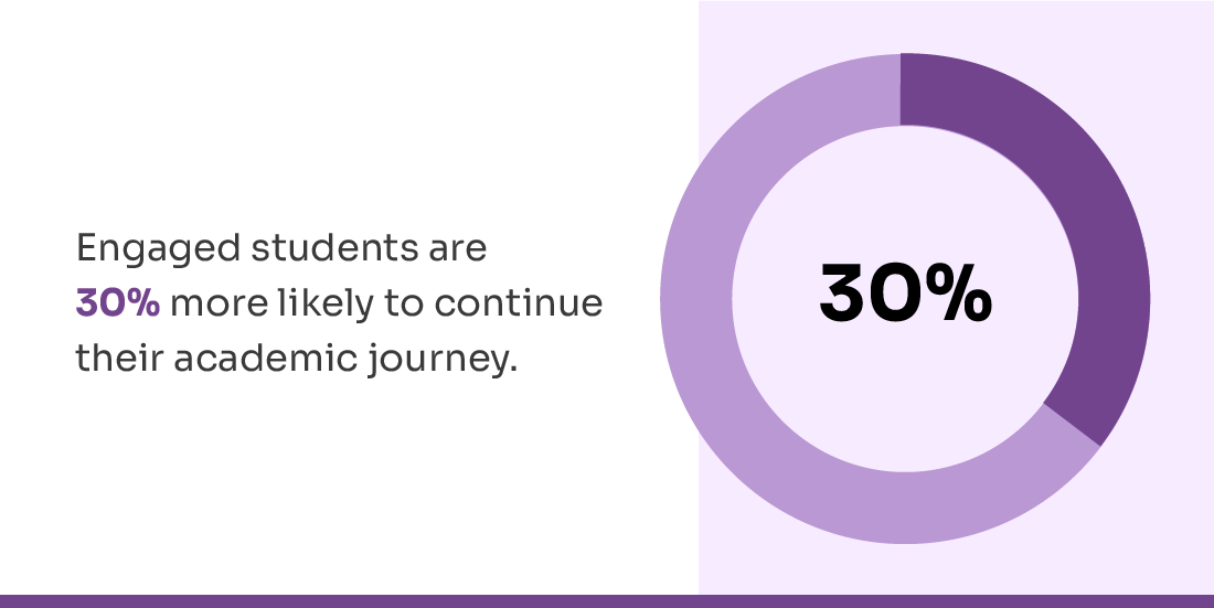 Higher levels of engagement directly contribute to institutional growth and long-term sustainability. When students are actively involved in academic and extracurricular activities, they are significantly more likely to persist in their studies and complete their programs successfully. Research indicates that engaged students are nearly 30% more likely to continue their academic journey, leading to improved retention and graduation rates. These positive outcomes strengthen key institutional performance metrics, enhance reputation, and support financial stability by reducing dropout-related losses and maximizing tuition continuity.