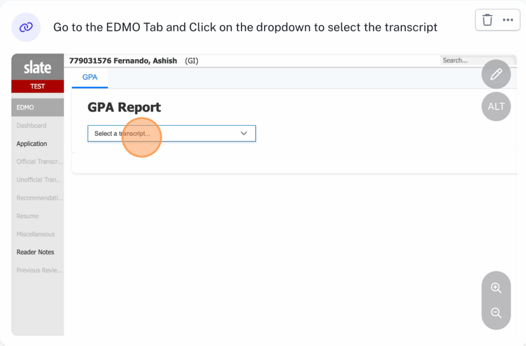 - Check for different transcripts submitted by the student under the dropdown